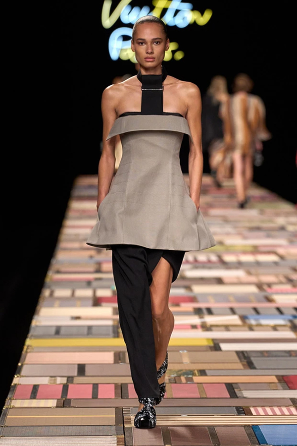 이번 시즌에는 보테가 베네타, 루이비통, 코페르니 등 큰 브랜드들에서 바지 한쪽을 잘라낸 디자인을 선보였어요.
