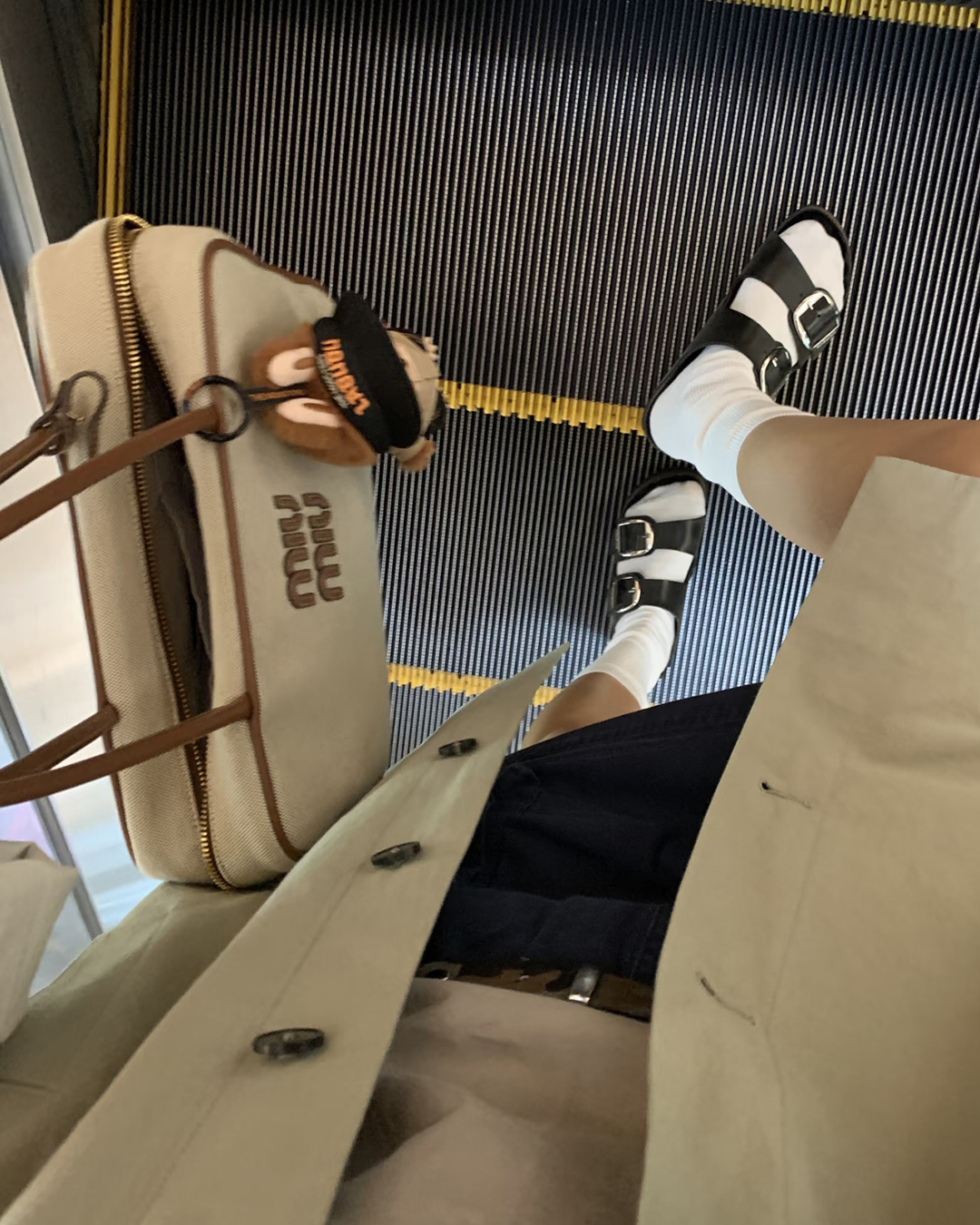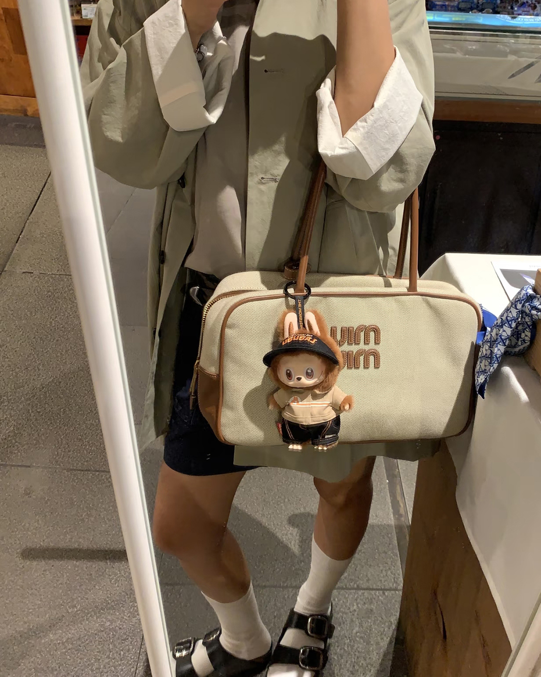 [Miu miu/미우미우]캔버스 탑 핸들 백(내추럴/탠)